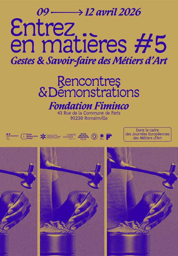 Informations pratiques : Entrez en matières, Du 9 au 12 avril 2026, à la Fondation Fiminco (43 Rue de la Commune de Paris – 93230 Romainville).